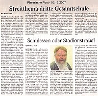 siehe auch: RP, 05.12.2007: Schulessen oder Stadionstraße