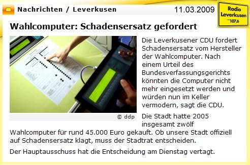 Die Leverkusener CDU fordert Schadensersatz vom Hersteller der Wahlcomputer.